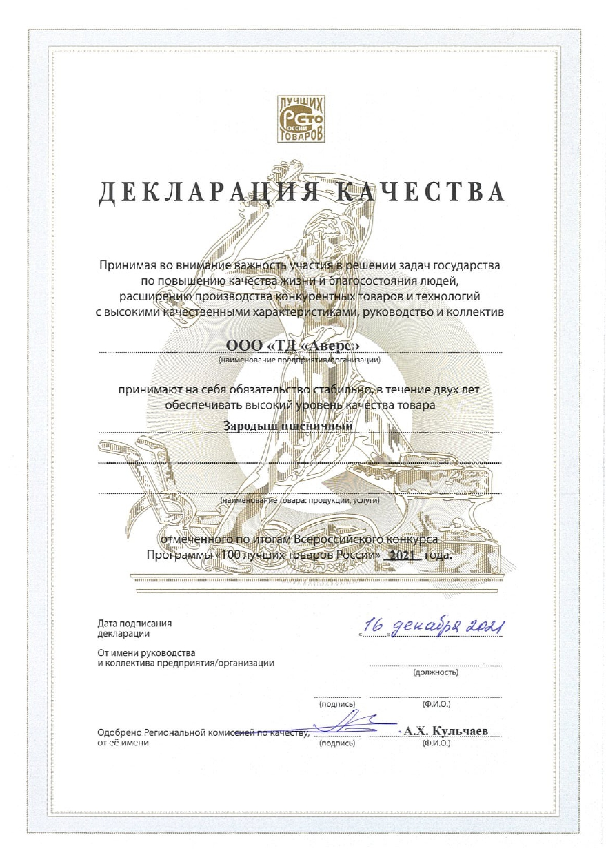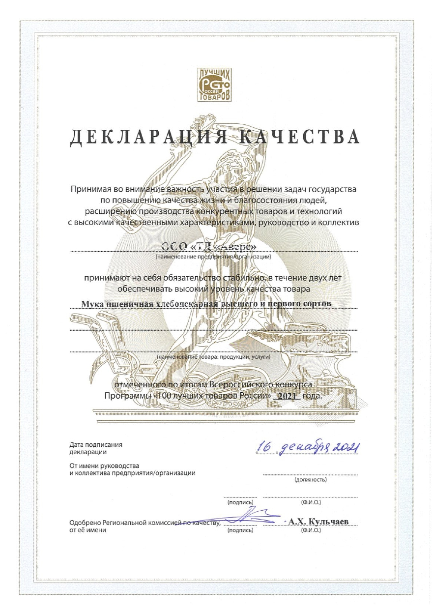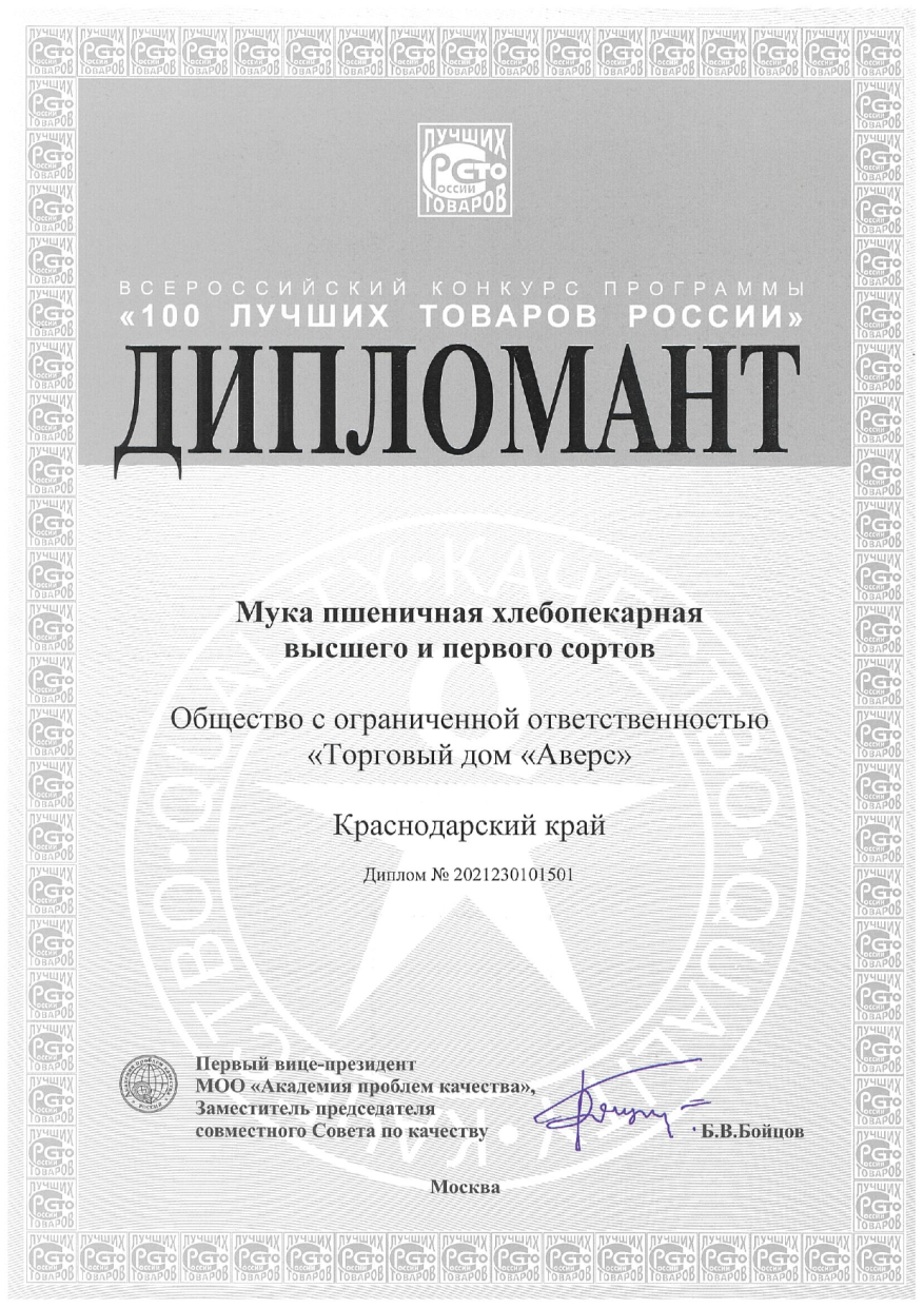 Предметом особой гордости является создание высококлассной продукции за счет того, что ООО "ТД "АВЕРС" имеет полный цикл переработки зерна: от производства элитных семян пшеницы, возделывания из этих семян товарной пшеницы, ее переработки на мельнице. Соответственнно, вопрос качества контролируется с легкостью на каждом из вышеперечисленных этапов.